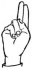 На ћирилици написано АНДЈЕЛИНА ЧУЧА састоји се из 13 слова [?]. Исписано ћириличном једноручном азбуком за глувонеме:
